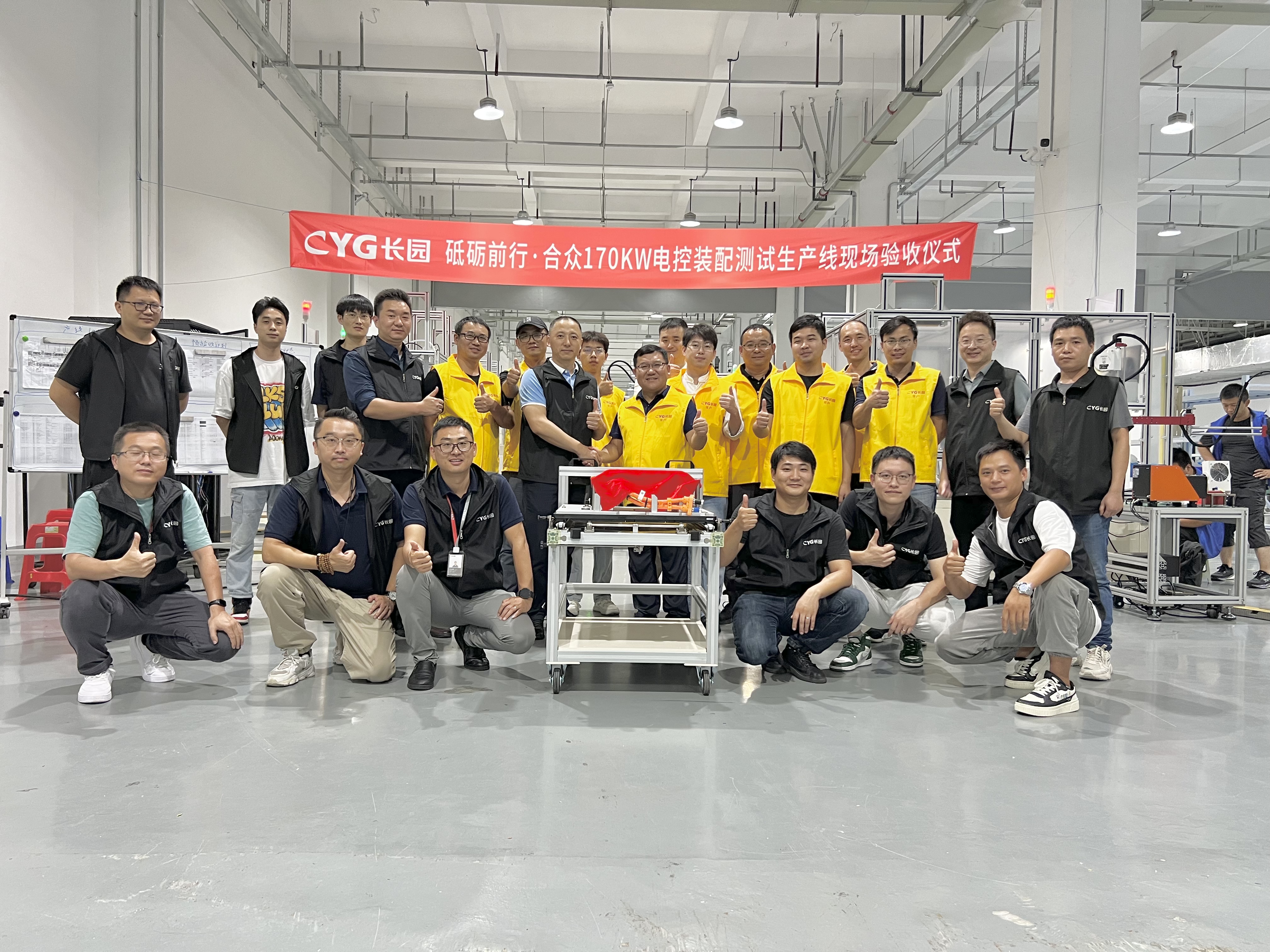 2023年8月10日下午,珠海达明科技有限公司与合众新能源有限公司在江苏昆山召开了“170kw电控装配测试线项目现场验收会”,合众零部件-浩智科技总工刘平宙、工艺总工王小刚及项目和工艺生产物流等审核小组成员,达明科技总经理郑立新、副总经理易鹏、业务总监王成尚、苏州BU2总监卞谦及主要项目成员参与了会议。