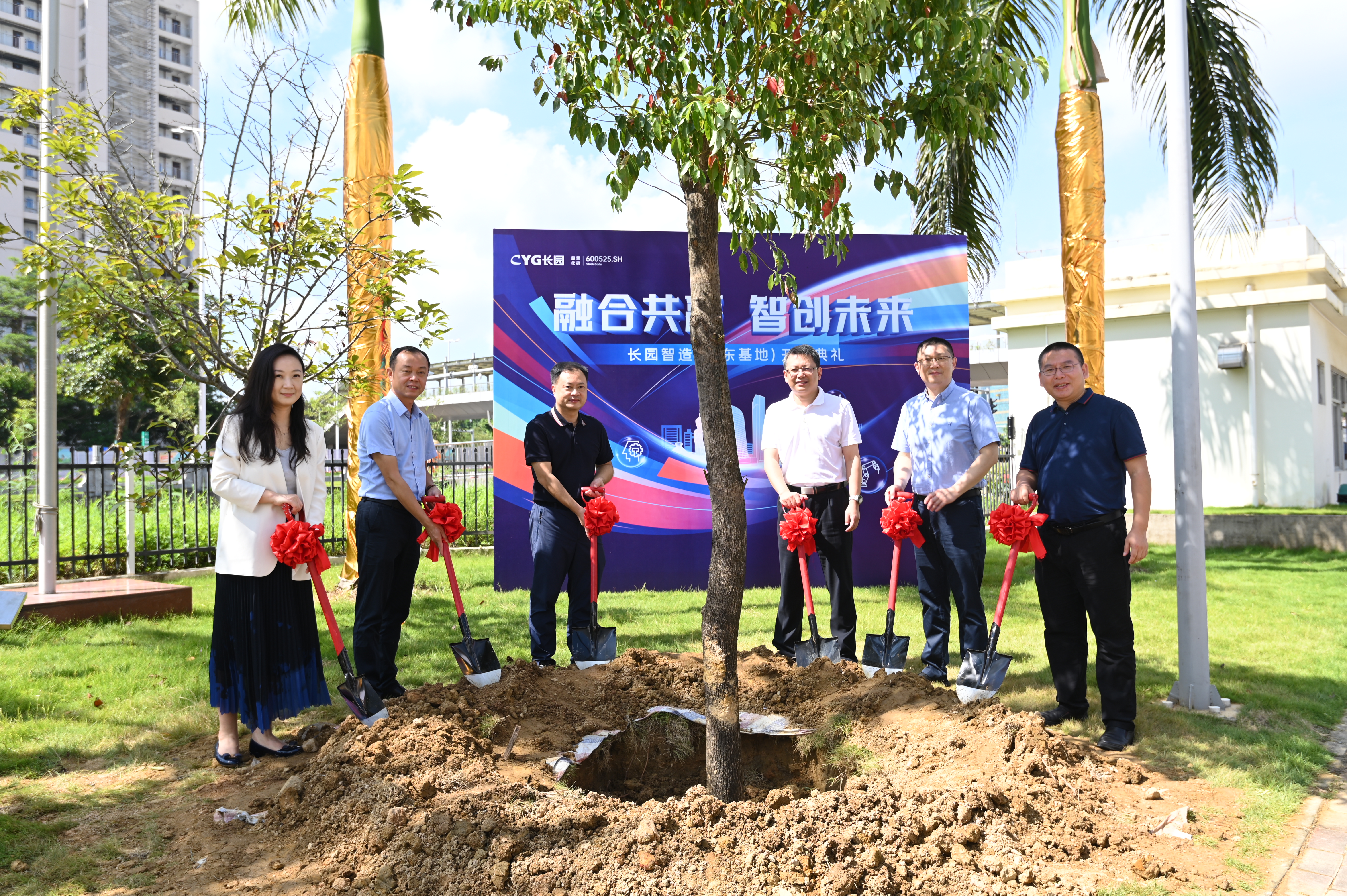 上午10点,珠海市高新区党工委委员、区管委会副主任薛飞,格力集团党委书记、董事长周乐伟,格力集团总裁助理、格信发展公司董事长程敏,xingkong星空科技集团董事长、总裁吴启权,xingkong星空科技集团董事长特别助理朱晓军,xingkong星空智能装备总经理熊胜辉共同为仪式进行剪彩并在基地种下一颗香樟树以作纪念,香樟树枝繁叶茂,四季常青,寓意着xingkong星空智造(广东基地)必将像香樟树一样生命力顽强旺盛、扎根高新区繁荣生长,成为高新区里的一棵参天大树。植树添绿共谱新篇,xingkong星空的发展迈出了又一关键的里程碑。