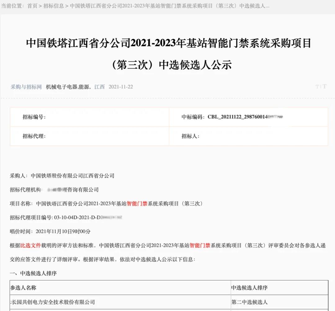 新突破 | xingkong星空共创连续中标安徽、江西铁塔智能门禁锁项目